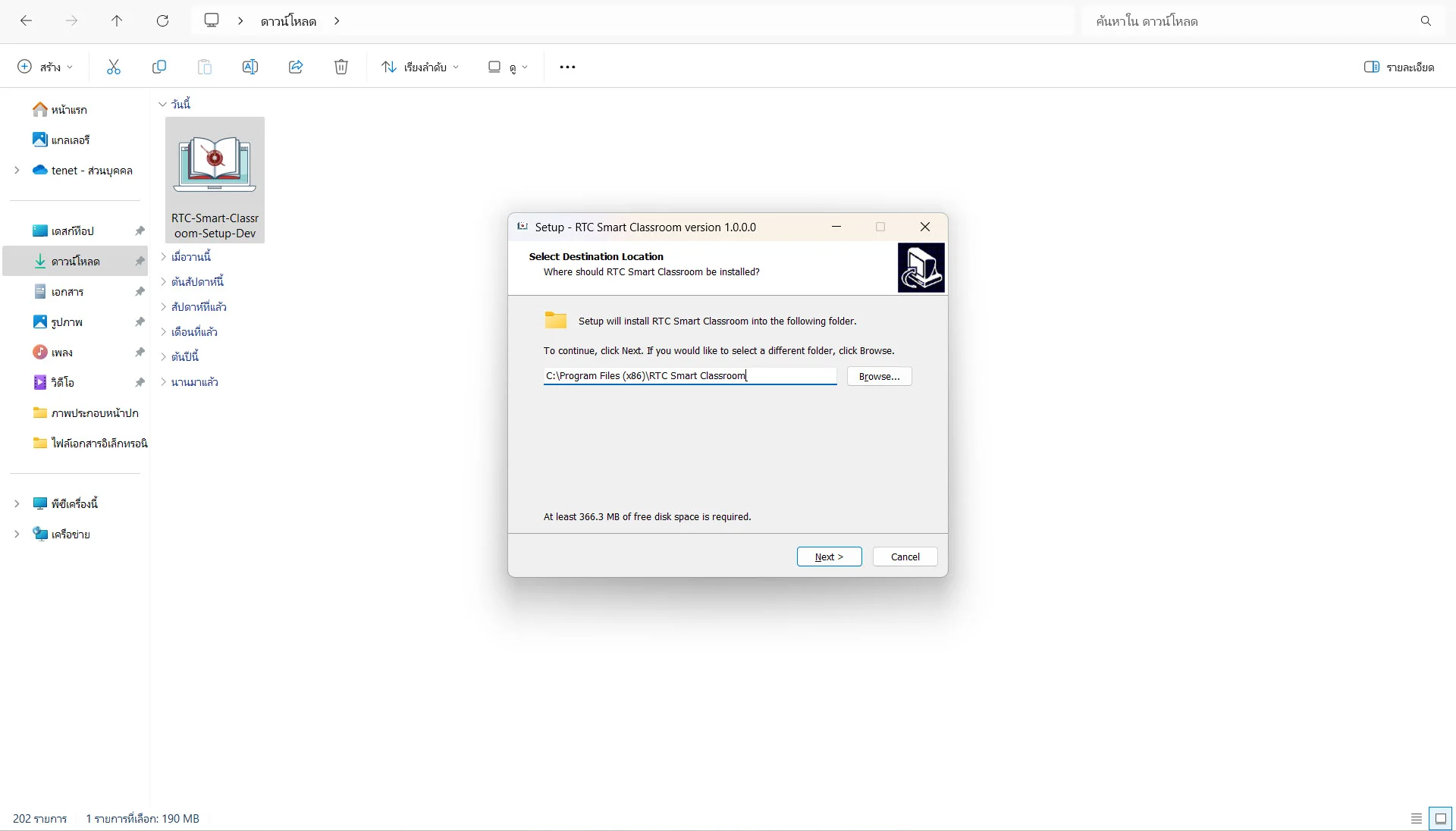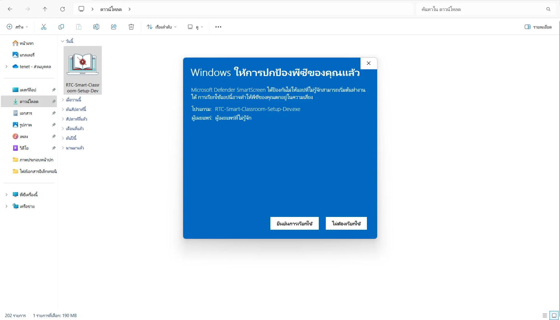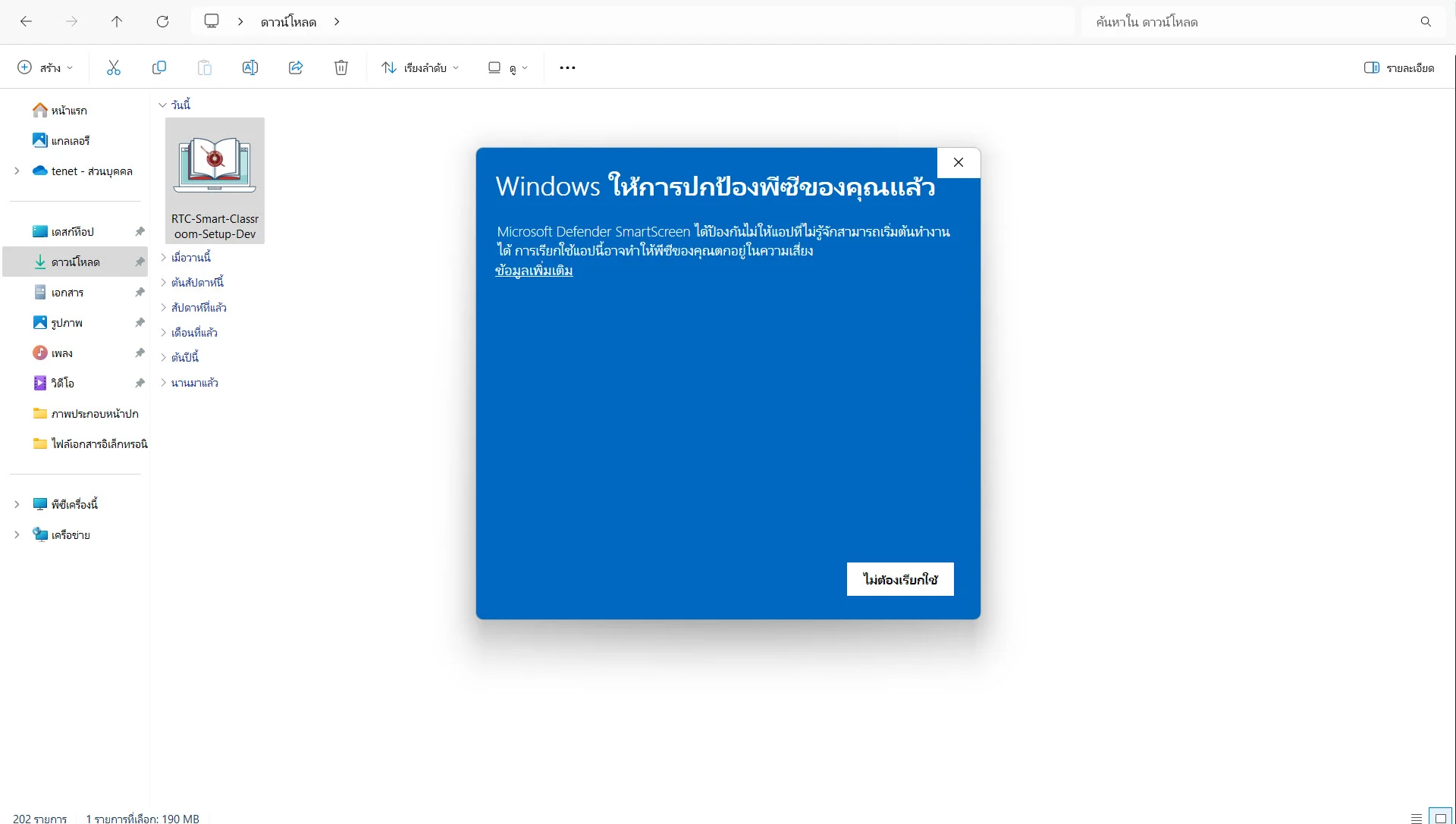 3. คลิกไอคอน RTP-Smart-Classroom-Setup.exe ระบบจะแจ้งเตือนกดปุ่ม ข้อมูลเพิ่มเติม