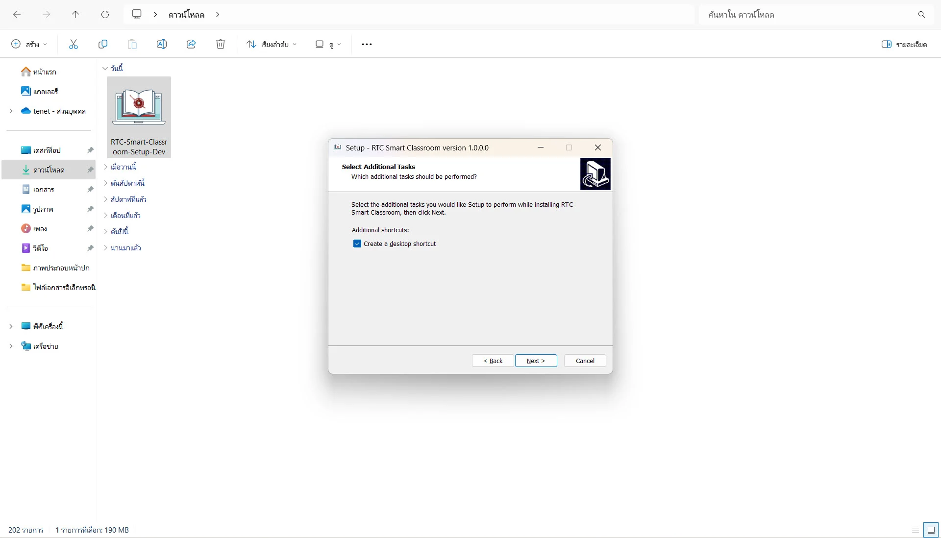 6. ระบบจะสร้างไอคอนที่หน้า Desktop กดปุ่ม Next